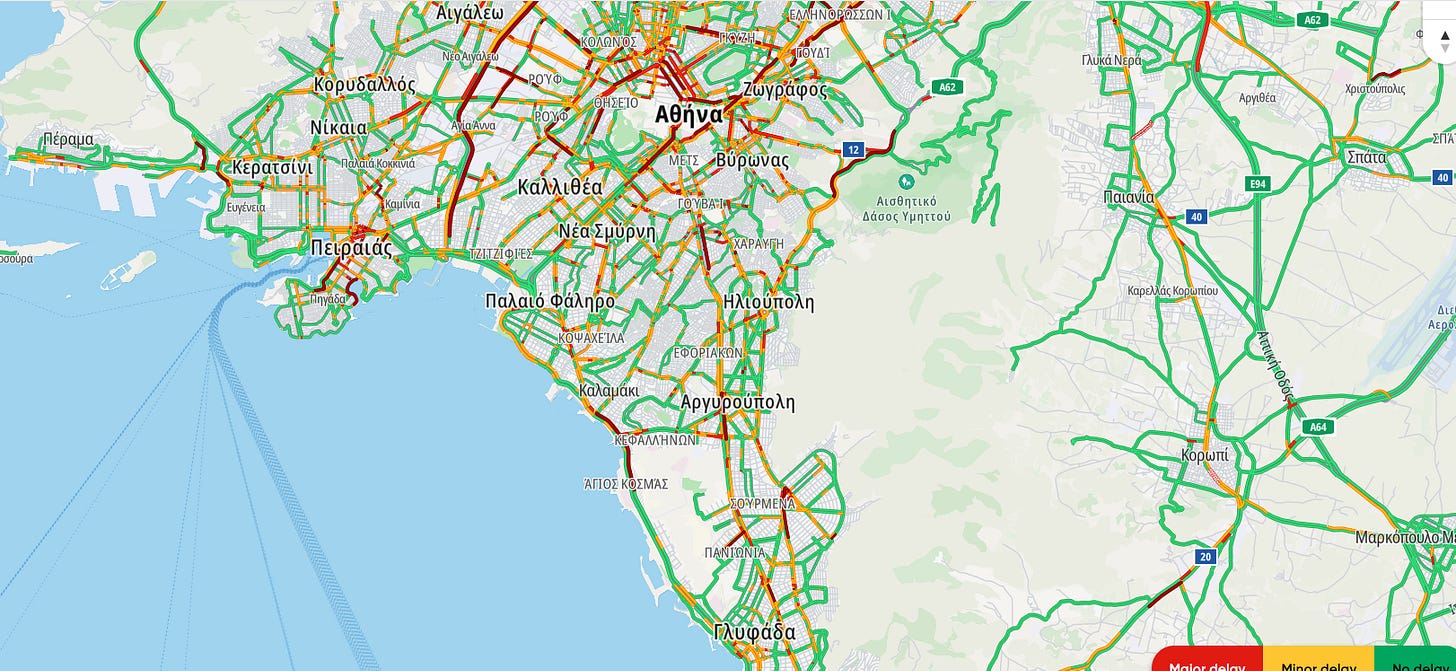 Τα στοιχεία αυτά επιβεβαιώνονται από το Κέντρο Διαχείρισης Κυκλοφορίας της Περιφέρειας Αττικής, με το οποίο ήρθαμε σε επαφή, καθώς βασίζονται σε ανώνυμα δεδομένα τοποθεσίας που συλλέγονται σε πραγματικό χρόνο. Οι εκτιμήσεις προκύπτουν από τη ρύθμιση σε “τυπική κυκλοφορία” της εφαρμογής Google Maps, η οποία αναλύει ιστορικά δεδομένα για να προβλέψει τους χρόνους μιας διαδρομής, καθώς και επιπλέον στοιχεία του κέντρου διαχείρισης. Επιπλέον στοιχεία μας παραχώρησε η Περιφέρεια για την ολοκληρωμένη αποτύπωση της εικόνας.