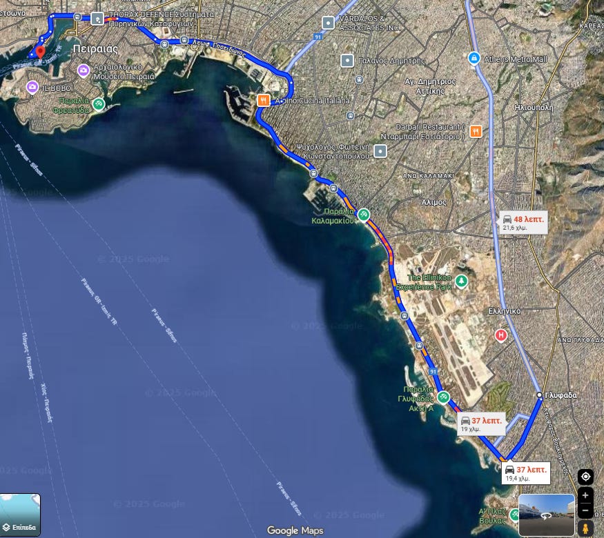 Διαδρομή: Λεωφόρος Ποσειδώνος (Γλυφάδα ➔ Πειραιάς)