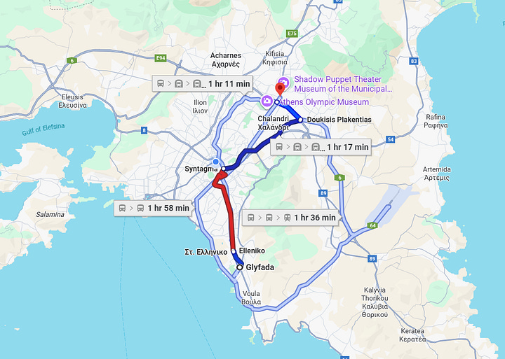 Διαδρομή: Γλυφάδα ➔ Κέντρο Αθήνας (Σύνταγμα)
